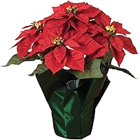 Amazon Com Tenwaterloo 15 Inch Potted Red Poinsettia Plant Artificial Christmas Poinsettia Plant In Gold Foil Wrap Home Kitchen